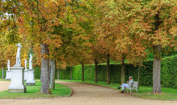 秋天已经挂上了枝头,无忧宫的大花园里有很多条小路,非常适合骑着自行车飞驰。应该说波茨坦就是个适合骑车的城市,Google Map里搜下bike rental,市中心有很多家(无忧宫没有哈)。