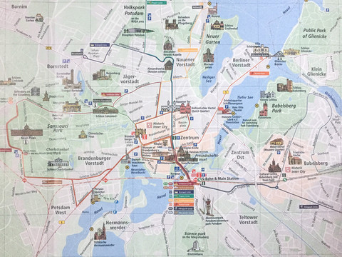 从柏林有地铁直达波茨坦(40分钟),Regional train到这里略快不过要先去到HBF或Est Station,反正买个ABC zone的天票就好了,因为这个票在波茨坦也能用!波茨坦火车站的游客中心就可以买无忧宫的票,顺便预定进去无忧宫参观的时间(比到无忧宫的售票处买更方便安排行程)。其实除了无忧宫、等建筑内部,无忧宫的整个ground是免费开放的,在此默默嫉妒当地人十万遍,半个城市都是花园随便你玩...