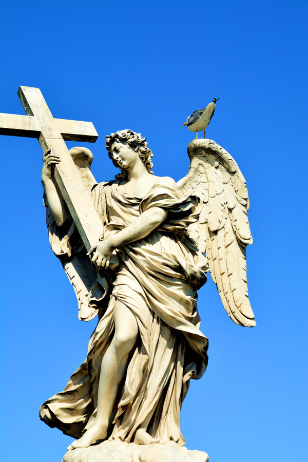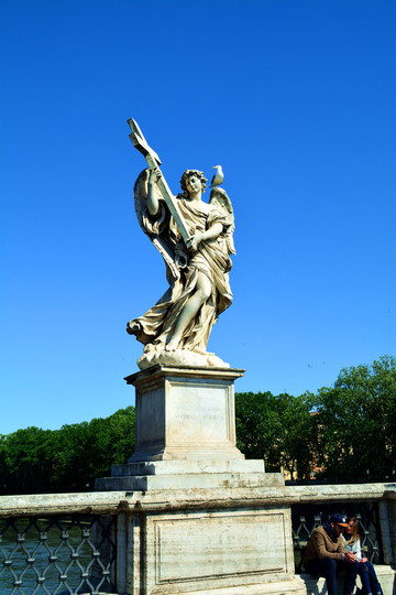 圣天使桥有天使雕像,每个天使手上都拿着一样耶稣受刑的刑具。其中二尊天使出自意大利著名的雕刻家兼建筑师贝尔尼尼之手。上面天使雕像翅膀上还站着一只大鸟。