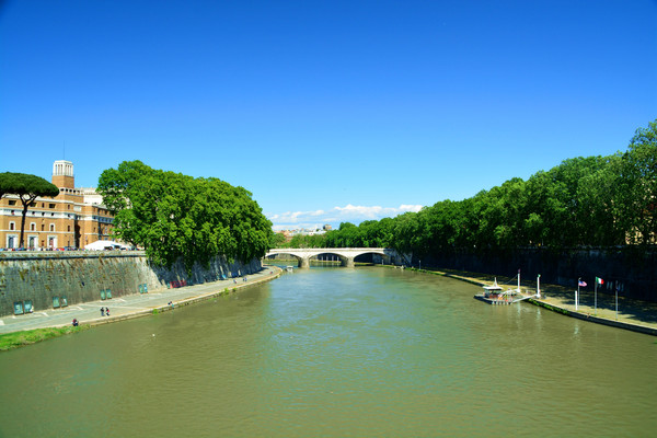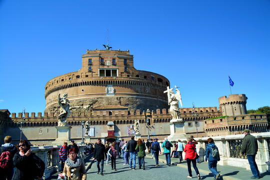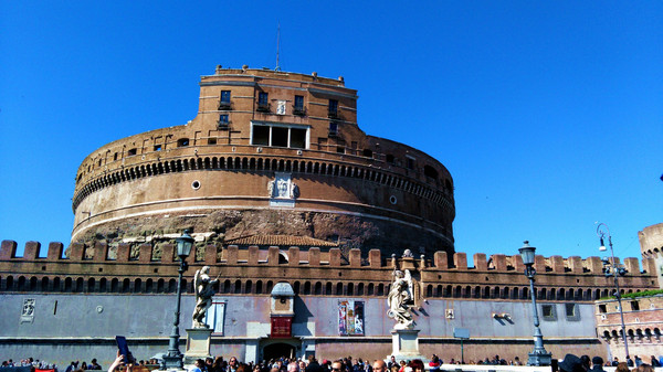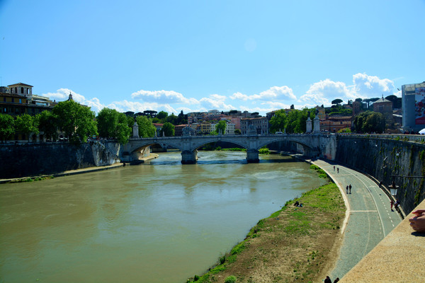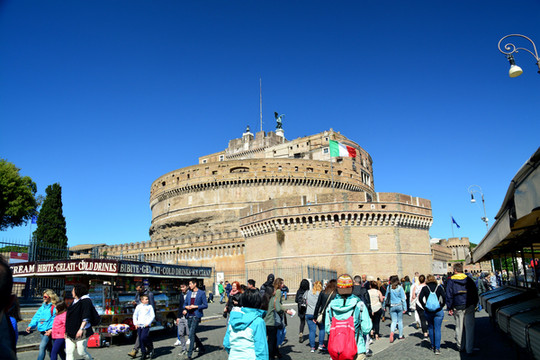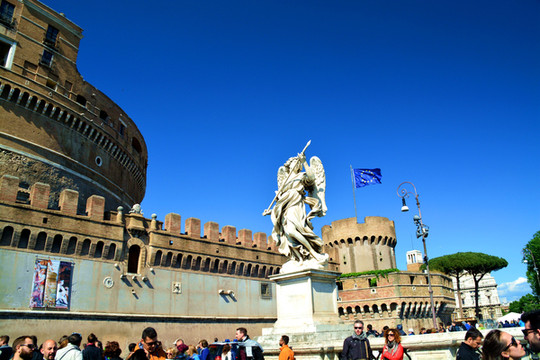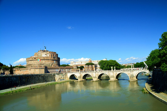 上面是特韦雷河。在公元2世纪的时候,罗马皇帝哈德良设计圣天使堡并亲自指挥建造,作为他自己以及其继承者的安息之地。几个世纪过去了,圣天使堡也经历了一些变化:先作为阻止西哥特人和东哥德人入侵的要塞,后是作为监狱,最后改建成一座华丽的罗马教皇宫殿。现在作为博物馆,除了收藏有罗马教皇的住宅家具外,古代的武器也是这里的一项重要的珍贵藏品。