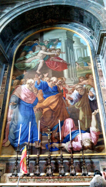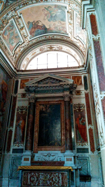 我们从维托里奥埃马努埃莱二世桥上面回到【协和大道】上面,下面照片是【德尔萨尔瓦多教堂】。也有不少警察,警车把守。
