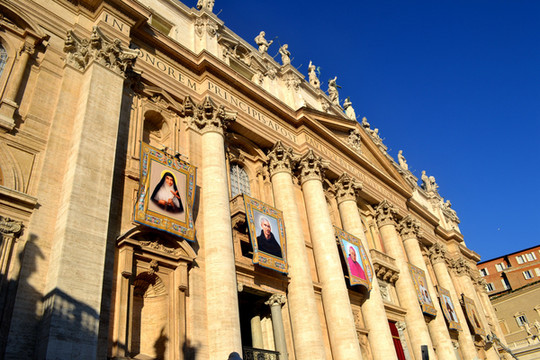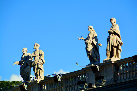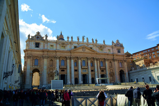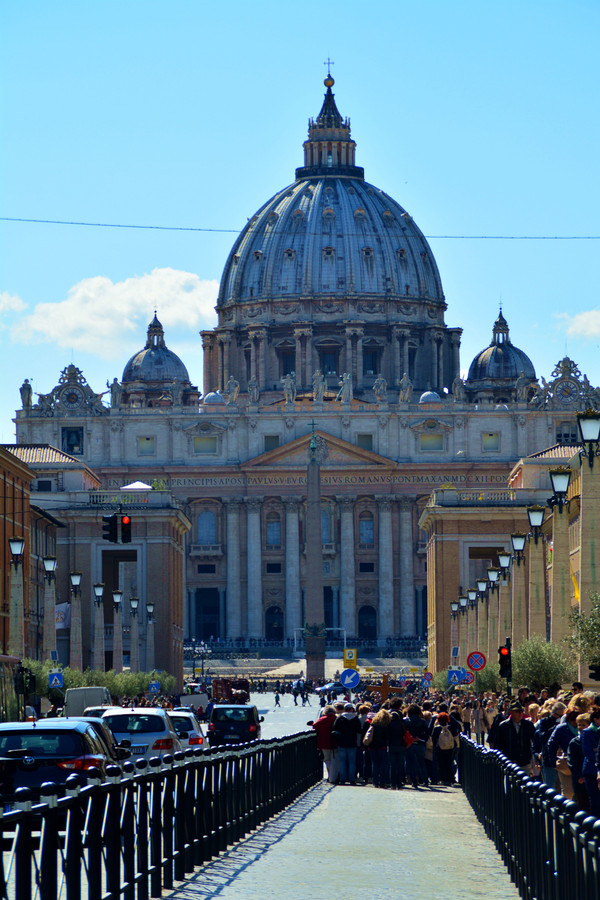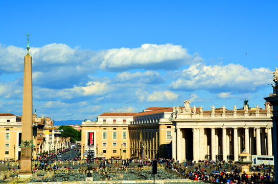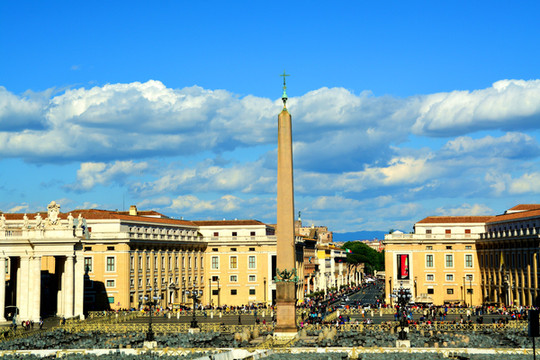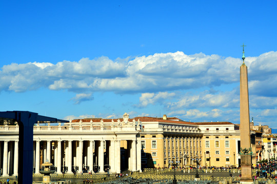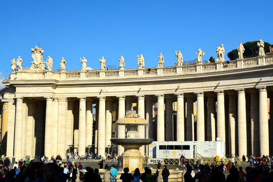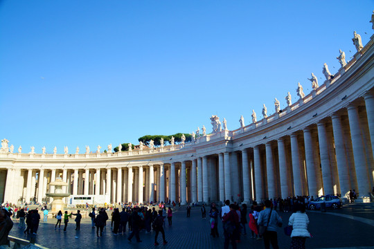 圣彼得广场位于梵蒂冈圣彼得大教堂前,建于17世纪,是基督教的聚集场所。站在这样一个恢弘的广场上,即使你不是教徒,你也会为它的气势所震撼。许多游客都为圣彼得大教堂而来,一年四季,从早到晚这里几乎都是人流不断,排着长队等待进入教堂的游客摩肩接踵。