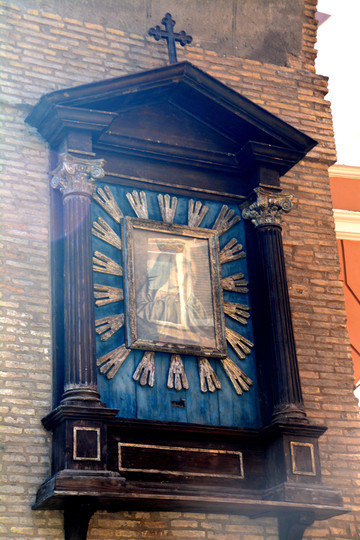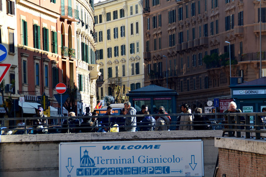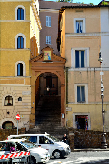 过了圣天使桥,再往前走,前面不远有一条叫维托里奥埃马努埃莱二世大街的旁边。这里有个小广场,也是公交车终点站,就是圣玛丽亚瓦利切拉。