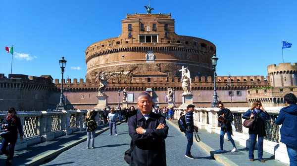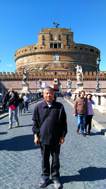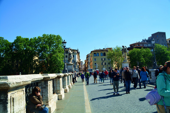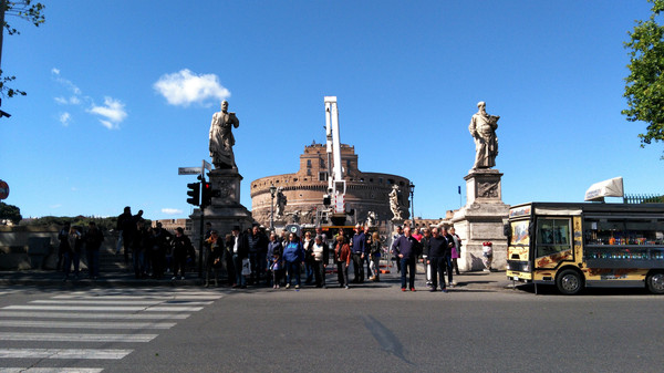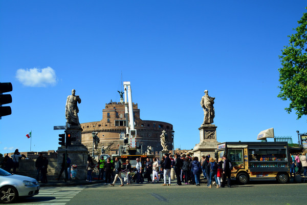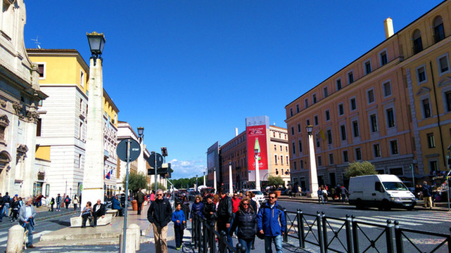 今天也不知道什么原因,前来梵蒂冈朝圣的外国人多得不得了。而且都是成群结队的,扛着大大的十字架,由神父带队。一拨连着一拨。排队要进的人是人山人海。我看看要排队起码一个半小时。我看看时间,我们自由活动的时间是4个小时。于是我决定先避开高峰,先去【圣天使堡】看看。由于我是第3次来到罗马。对于梵蒂冈比较熟悉,地理位置也都知道,那么就沿着【协和大道】前进。
