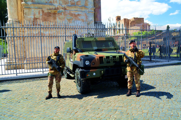 最近由于难民问题,意大利出动军队,荷枪实弹,加强巡逻。