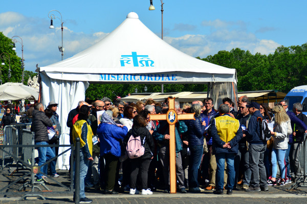 今天一定是什么节日,世界各地的朝圣者,纷纷涌入梵蒂冈。回来以后我查了材料,才知道,这是天主教(公教)每年有四大瞻礼的:耶稣复活瞻礼 。是每年4月份月圆之后第—个星期日。正好就是那一天。