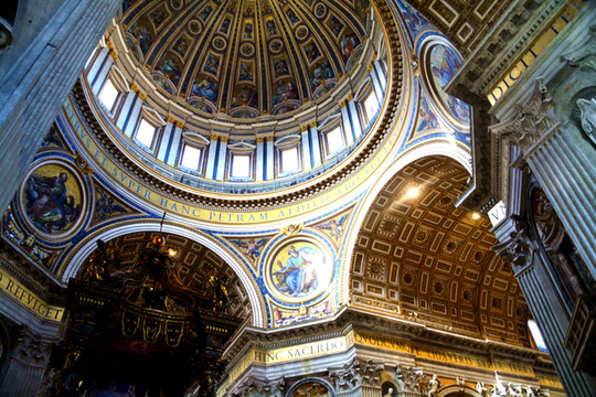 这是 罗马天主教的中心教堂,欧洲天主教徒的朝圣地与梵蒂冈罗马教宗的教廷,是全世界第一大圆顶教堂。在圆穹内的环形平台上,可俯视教堂内部,欣赏圆穹内壁的大型镶嵌画,雕像。