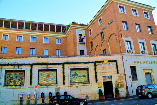 在这里,是【协和大道】背后的一条街道,没有什么人。我碰到一位年轻人,长得黑不黑,白不白的,身上有纹身。看见我只身一人在拍照,直冲冲地过来拦截我,理直气壮地问我讨要香烟。我面无表情,不慌不忙,理也不理,转身急步就走。他在我背后叽里咕噜,我当他放屁,加紧脚步,赶快回到人多的地方。2个半小时以后,我又在梵蒂冈的另一个出口处,看见他坐在地上。我感觉他无所事事,一定不是善类。