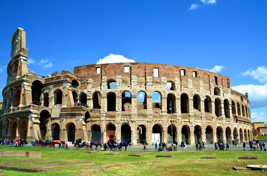 世界八大名胜之一的古罗马露天竞技场,也称斗兽场,建于公元1世纪。这座椭圆形的建筑物占地约2万平方米,周长527米,是古罗马帝国的象征。宽阔的帝国大道两旁建有元老院、神殿、贞女祠和一些有名的庙宇,如万神庙等。