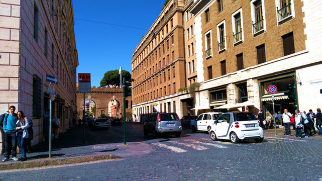 接下来我们来到梵蒂冈,准备参观梵蒂冈,这是世界上最小的国家,拥有自己的广播媒体,可以发行邮票,货币和报纸。是个政权独立的国家。也是全世界天主教教徒的圣地。