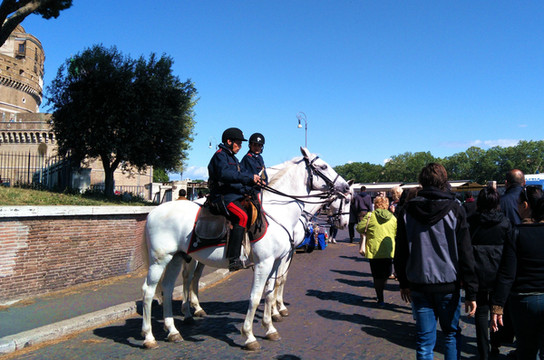 【协和大道】上面全是朝圣的外国人,人山人海。罗马的骑警也出动了,还有英姿飒爽的女骑警。