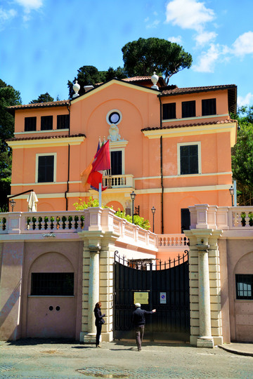 广场西面距离纪念馆100米左右的地方是,建于文艺复兴时期,曾经是墨索里尼的官邸。馆内的收藏于建筑特色都不容错过,这里展出了极其精美的拜占庭风格和文艺复兴早期风格的绘画和各种收藏,比如珠宝、挂毯、陶器等,也别忘了抬头欣赏带有装饰的天花板。博物馆周一关闭,周二至周日开放时间是8:30-19:30,18:30停止售票,票价是5欧元。罗马旅游完毕了,有很多不合理的行程。但是也没有办法。