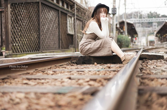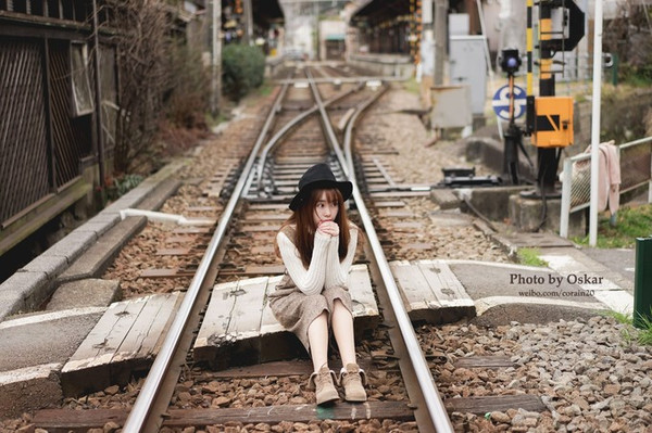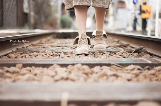趁车火车刚开走的10分钟间隔,速度跑上铁轨拍一组,千万不能因为拍照而影响到火车的正常运行哦,而且这样也是很危险的。