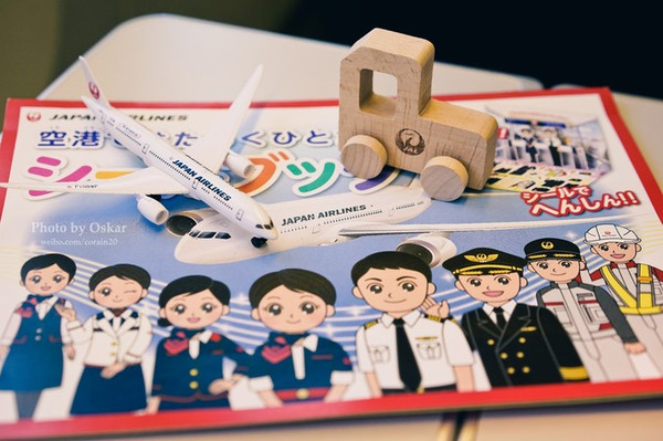整个旅程的3个小时,空姐始终保持微笑和日本式的鞠躬,而且全程提供不间断的服务,总能第一时间响应乘客的需要。最后空姐得知我有个4岁的宝宝,还特意赠送了一份给龙龙的小玩具,有日航的飞机模型,木质小汽车,还有可以给空姐和飞行员自由换装的小册子,真是超级温馨阿。