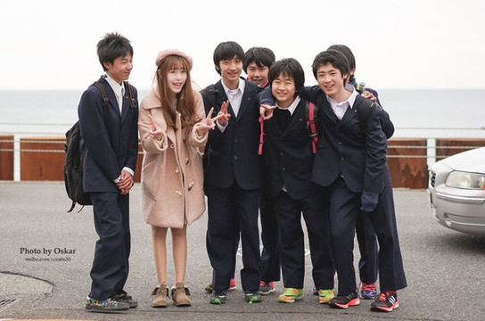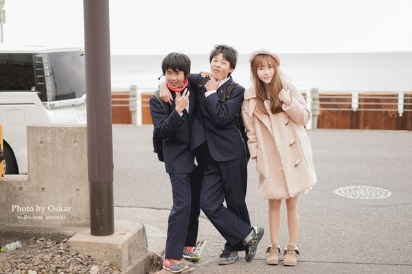 哈哈,镰仓高校的学生们估计已经早已习惯了每天有很多粉丝来这里膜拜,所以合影起来丝毫没有羞涩阿,感觉都是熟练工了有没有,哈哈