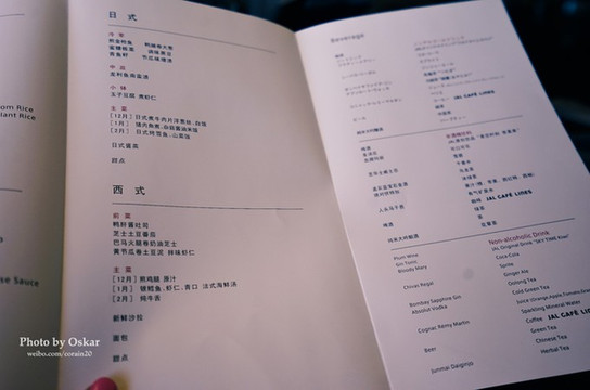 商务舱的机舱有日式和西式的选择,并且酒水饮料的选择超级丰富阿,特别推荐他们的JAL特制咖啡,据说是日本著名的咖啡大师,有“咖啡猎人”美誉的川岛良彰先生特别烘焙的,味道非常香浓,酸度和苦味也恰到好处,还带有一丝柑橘的清香,真的可以说是一种享受。