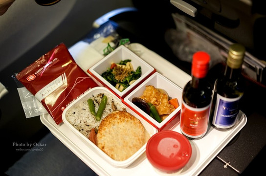 经济舱的餐食也很不错哦,看似简单的菜品,配合上日本独有的酱料,味道都很棒。