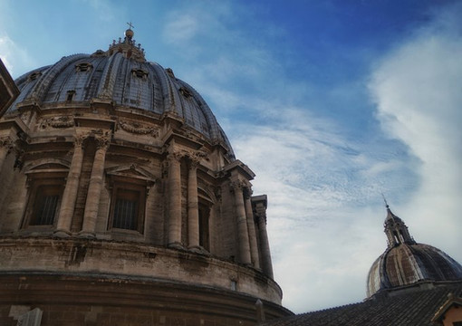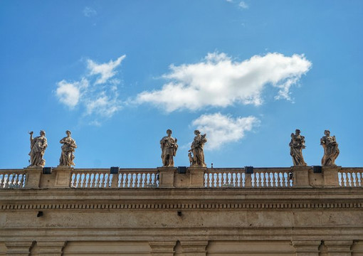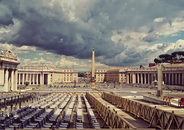 圣彼得大教堂前的广场非常开阔,据说能同时容纳几万人活动,站在排队的人群中仰视忽觉自身的渺小...