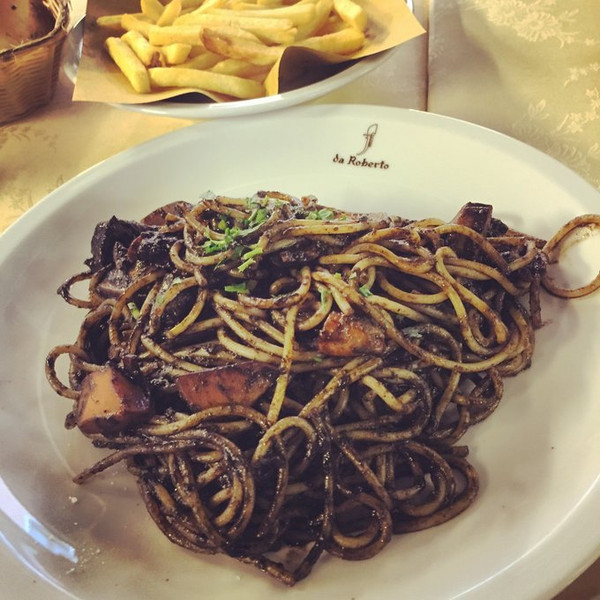 中午的一场大雨让我们不得不停下找了家餐厅就餐避雨,吃到了此行最贵的一餐,不过也尝试了著名的墨鱼面,看着吓人味道还是不错。