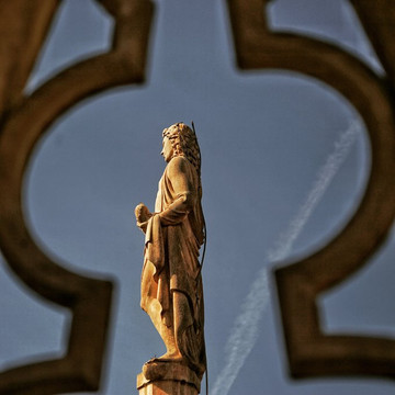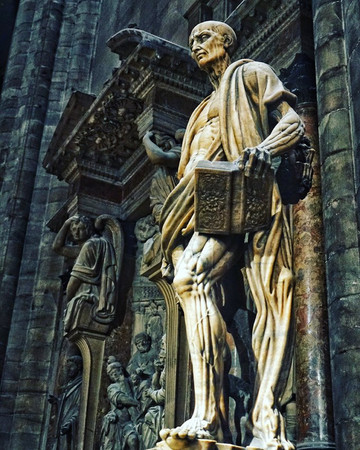 这座雕塑是米兰大教堂内的米开朗基罗作品,剥了皮的圣巴塞罗缪...