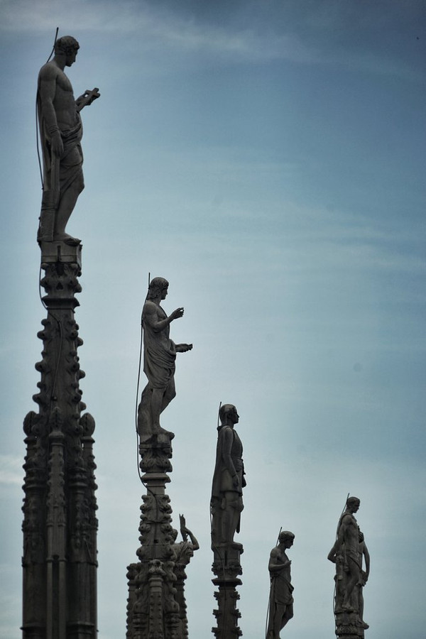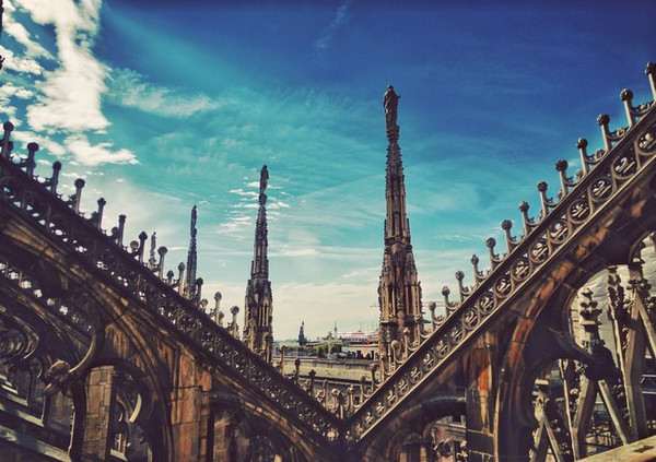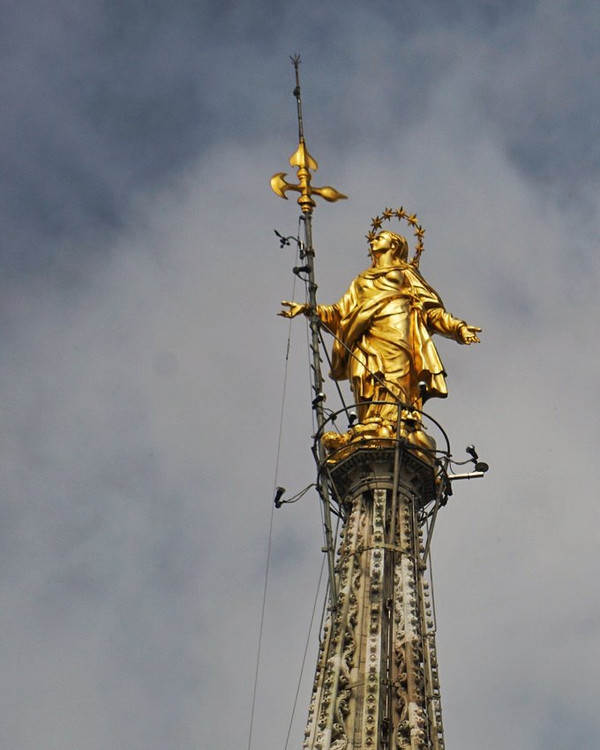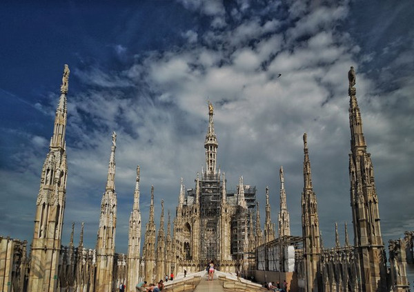 进入米兰大教堂门票2欧,电梯登顶套票15欧/人,我们选择了电梯,在教堂后面进入,电梯下来再爬几十级台阶就到教堂楼顶平台了。米兰大教堂虽然壮观但过分繁复雕琢, 赶脚密集恐惧症都要犯了...