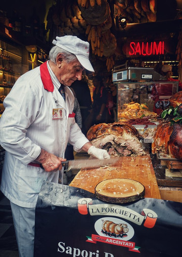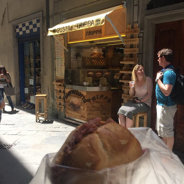 路过,排队的人都绕着小广场转圈了,我们果断放弃。意外的发现了一家猪肉面包店,就是意大利式肉夹馍,味道不错,据说门口切肉的老爷爷已经是当地一景了...
