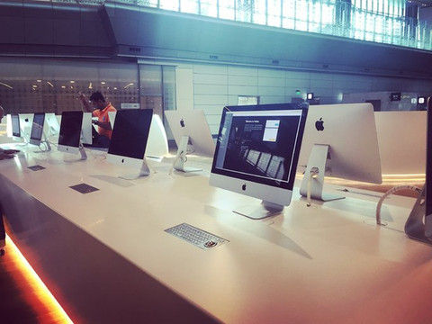 多哈机场有趣的娃娃滑梯,还有免费的苹果电脑可以上网。