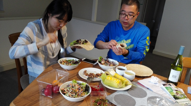 中午newworld超市边的Pita Pit店,吃个大饼。其实就像我们的煎饼卷菜,只是饼大了些,可卷的东西十几种,自己选择。方便快餐,味道也不错,不时有人进店来买。