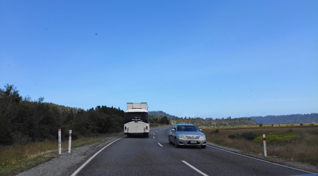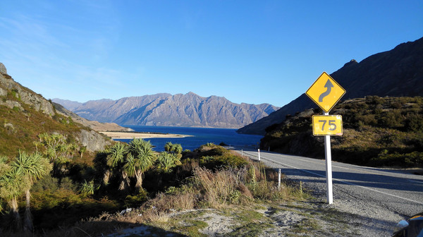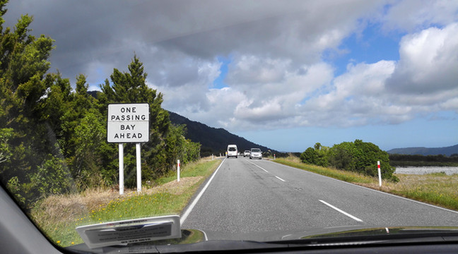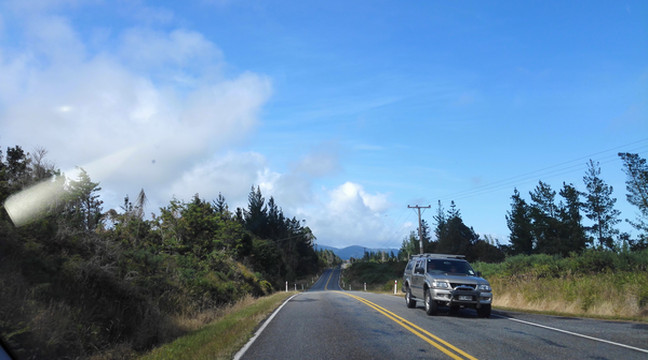 (4) 变化多样的地形地貌,悠长绵延的海滩,广袤开阔的自然空间,造就了新西兰醉人的自然风光。山路弯道较多,车速却不慢,赏美景的同时,一定要注意谨慎驾驶!道路两旁的观景台标识很清楚,也都提供了方便的免费停车位,其他路段就不要随便停车观景。