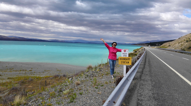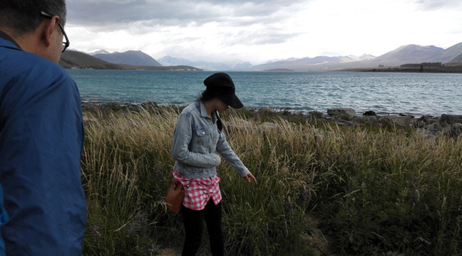 从库克山国家森林公园出来,快接近特卡波湖的路边,又看到的湖,管它是啥湖呢,停车,玩玩!