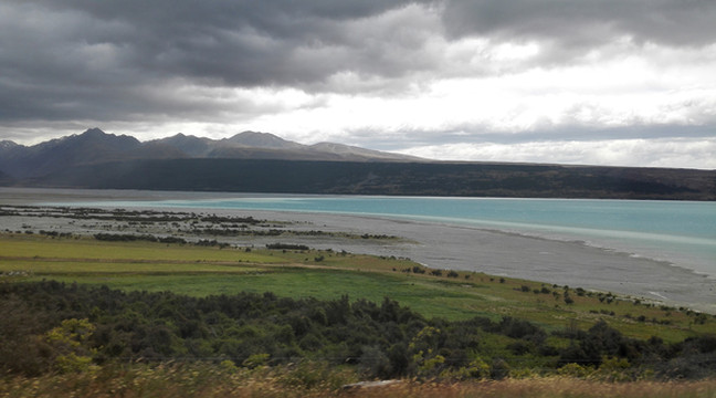 早早起床,早餐,七点出发,途经6,8,80号公路,用时三个半小时,10:30到达库克山国家森林公园游客服务中心。不巧,狂风大雨,只能在服务中心附近看看。但这一路来的景色,绝对是惊喜的,尤其是80号公路边的湖(lake pukaki),真是美爆了!