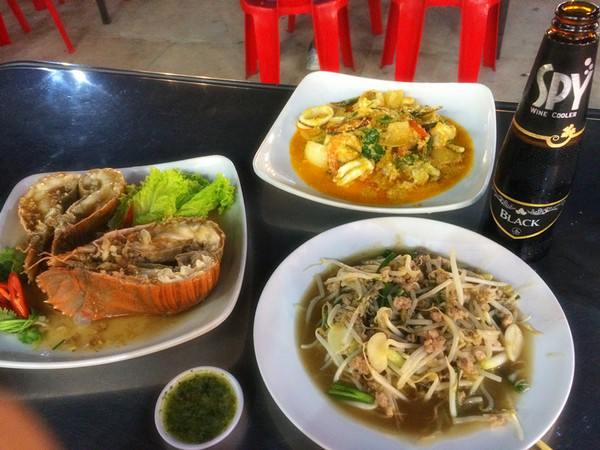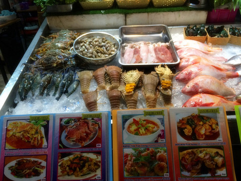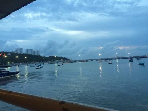 东芭乐园回来的车上就直接在芭提雅最著名的酒吧一条街walking street下车了。walking street是芭提雅最著名的情色酒吧一条街了,到晚上相当热闹,各个酒吧门前有各色不同的美女展示,日韩风、欧美风、泰国本土风......一应俱全,眼花缭乱。在泰国色情行业是合法的,一般看到酒吧门口挂的招牌是A GO GO,代表里面的美女是都可以带走的!我们去的时候还太早,就先找了一个海鲜餐厅吃了顿大餐,1000B吃到撑,而且餐厅环境不错,就在海边,俺们吃饭的时候勺子居然掉下海了,可见有多近!