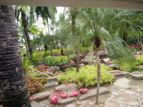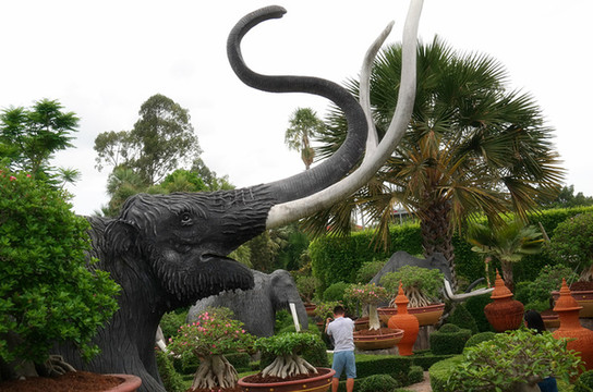 因为第一天确实很累,晚上才想起来要订第二天去的票,结果上午去东芭乐园是赶不上了,只好下午去。我不得不再感叹一声,万能的马云啊,这种票都可以在淘宝上订。东芭乐园是一个私家园林,里面有很多热带的植物,但离市区比较远,两个人包车成本太高,就在淘宝上定了景点、游览车、表演、接送四项服务,费用是每人200多人民币,相当于当地半日游的团。由大巴车接到之后直接到东芭乐园,因为园林太大了,所以坐了游览车,游览车还挺人性化的,每到漂亮的地方就会停下来给大家拍照,其实还有另外一种交通工具可以游览,就是骑大象。这边估计喂了有上百头大象吧,骑着大象游览也是别有一番滋味的,因为我们在普吉岛已经骑过大象了,所以就直接坐游览车了。
