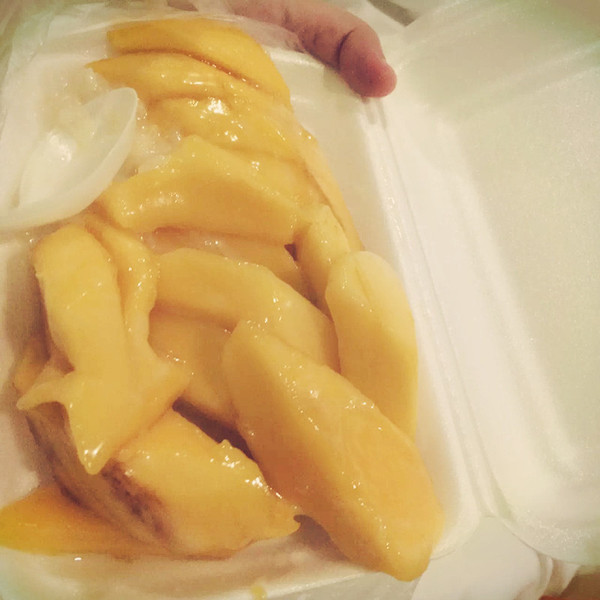 上整个的芒果,再加上泰国本地的咸牛奶,香甜又不觉得腻,极好的甜品,可惜忘了叫什么名字了,经常排长队,但旁边的那家名字很好记叫“金妈妈芒果糯米饭”(与旁边那家生意差的太远了),这成为我们在芭提雅每天必吃的甜品。吃货们,准备管好你们的口水吧~啊hohohoho!