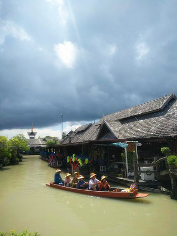 上午去了有名的四方水上市场,也就是杜拉拉水上市场,跟在前一天出海时认识的朋友一起买的票(当然是淘宝买的),门票+船票一共是45人民币。距离不算太远,四个人包的taxi前往,来回一共是400B。从大门进去之后慢慢逛进去,几乎任何泰国的特产都可以买到,除了河岸上有很多小店之外,沿河有很多小船,可以买水果、小食品等。这里居然还有一个玩滑索的,距离不长,不过一条河的距离,不过100B可以坐个来回,感受一下也不错。这边吃东西挺便宜的,我们四个人一起吃了顿饭才400B,各类小吃也挺多的。逛到后门了之后可以再坐船回来,挺舒服的。这边九点开门,我们大概玩到中午1点钟回酒店!