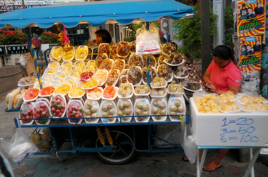 酒店挺温馨的,而且价格也便宜,好像是两百多人民币,这就是我们在芭提雅住了三天的酒店。在酒店安顿好之后去街上随便逛逛,找了一家当地人比较多的酒店吃了一顿正宗的冬阴功汤、炒饭等。然后就去做了个SPA,芭提雅这条街的spa非常多,估计走两步就能看见一家,找了一家人多的店做了个最简单的足疗,时间大概1小时,费用每人200B,人民币不到40块钱,真心便宜,而且相当舒服,旅途的疲劳一下就缓解了。然后就是到处逛逛看看环境呗,居然被我们在旁边的菜市场找到了一家极其好吃的芒果糯米饭,60B,香甜软糯的泰国糯米加
