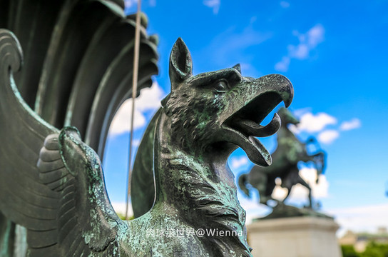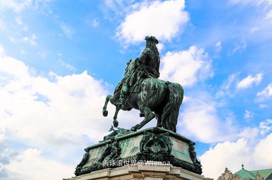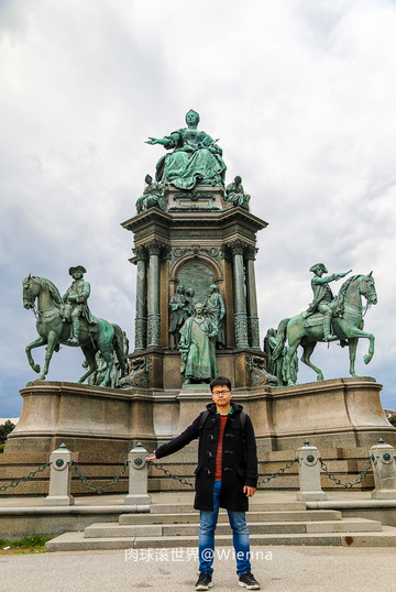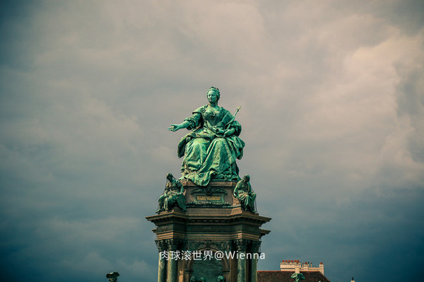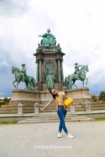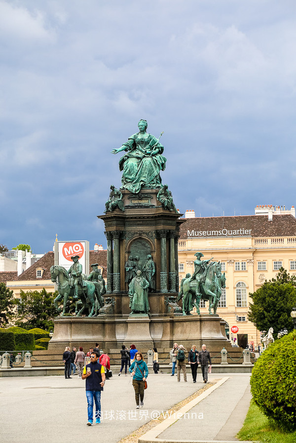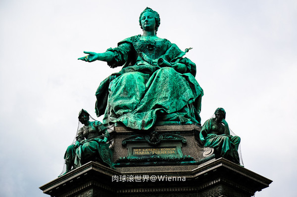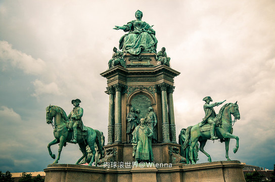 这个广场以玛利亚·特蕾西娅雕像为中心而展开的。德国雕塑家聪布施(Zumbusch)创作的这位神圣罗马和哈布斯堡王朝历史上最为著名的和传奇的特蕾西娅女王,面朝东北,高高的端坐上方。基座的群雕中,有骑马的将军、站立中间的是首相,四周高浮雕表现的与她同时代的16位风云人物,其中有音乐家海顿和莫扎特。这座雕像体制很大,远远望去,气势非凡,一定程度上也反映出了玛利亚·特蕾西娅女王全盛时期的风采。