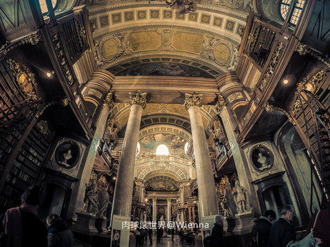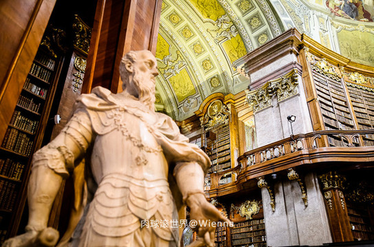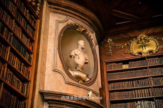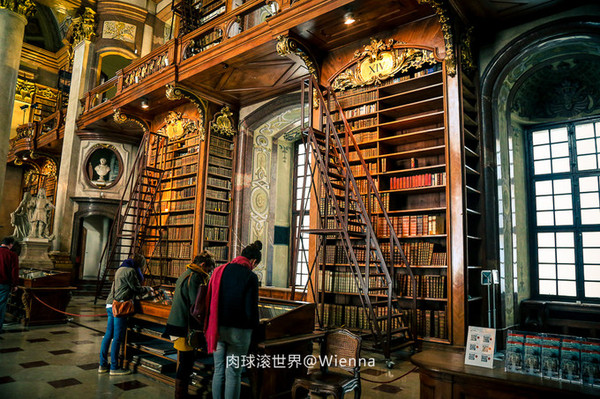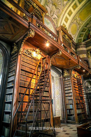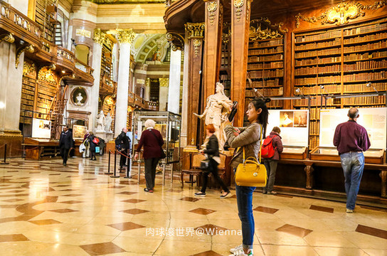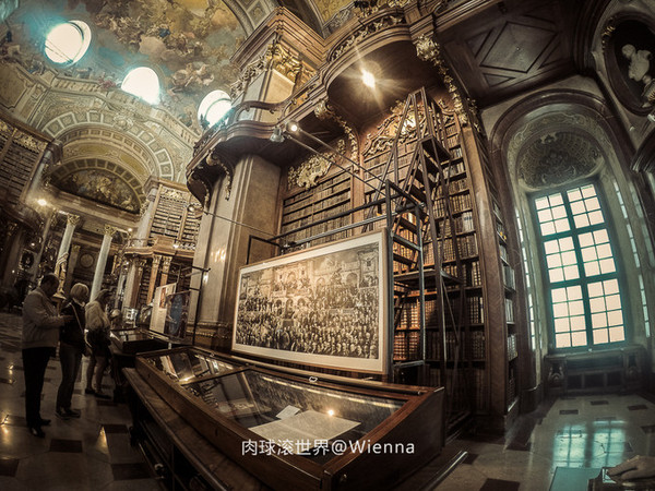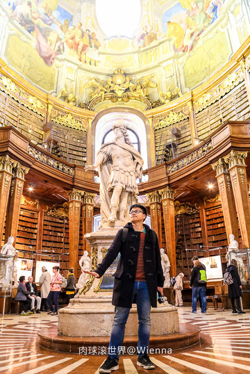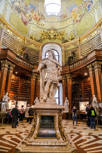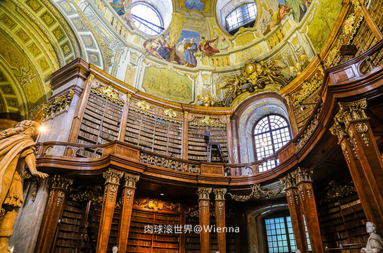 穹顶的壁画,成排成架的古书,据说这里收藏了740万藏书,是奥地利最大的图书馆。