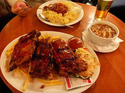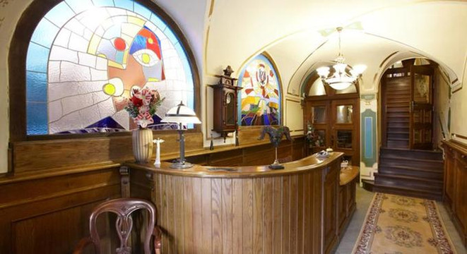 我们俩因为对咖啡甜点什么的不是很感兴趣,就在门前打望了一眼,里面的装潢感觉保持了几百年的历史