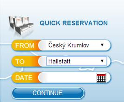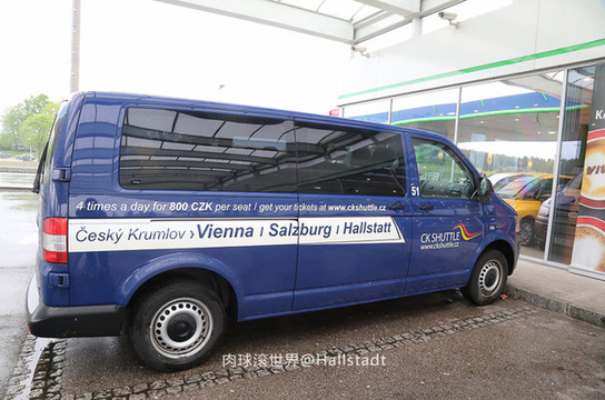 在哈尔施塔特、CK、布拉格之间都可以乘坐这种shuttle bus。五座或者七座商务车,有door-to-door服务,可以欧元或者捷克克朗支付,需要先在网上用国际信用卡付款,我们选的宾馆到宾馆,也就是door-to-door服务,一共1900捷克币,预付了400捷克币,到时候他来接你再付剩余的钱。
