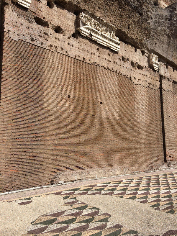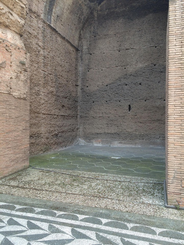 铺满马赛克的地面,砌得非常平直的红砖墙面可以看出即使是浴场,修建的标准也是非常高的。