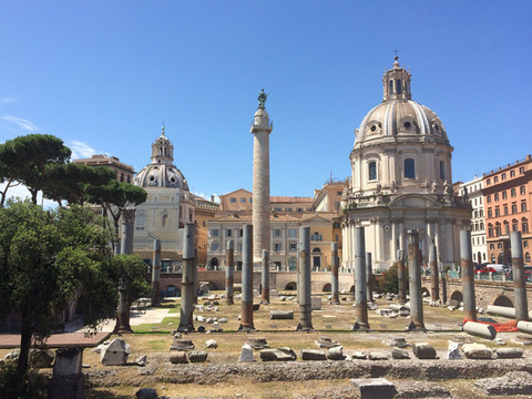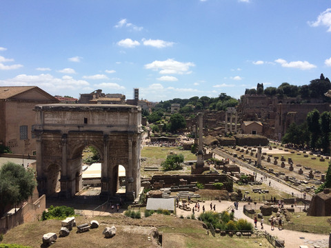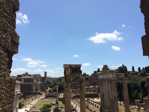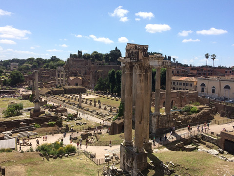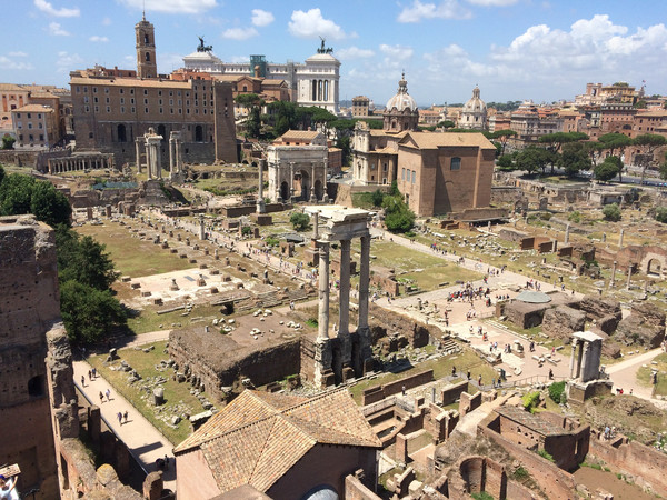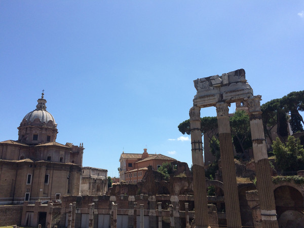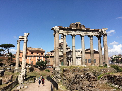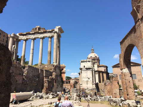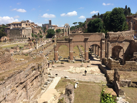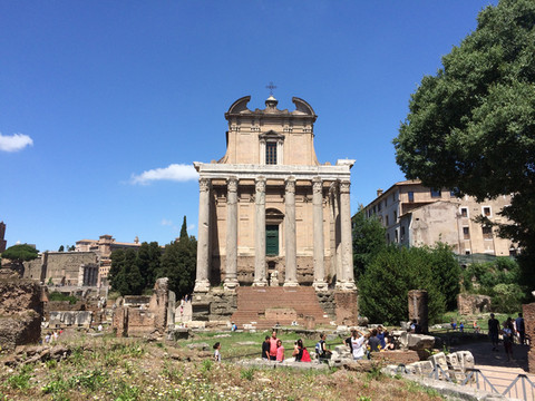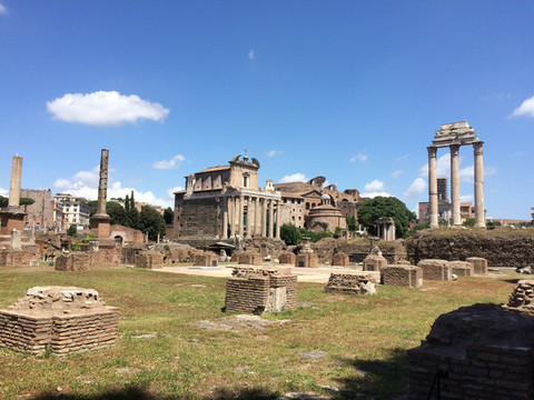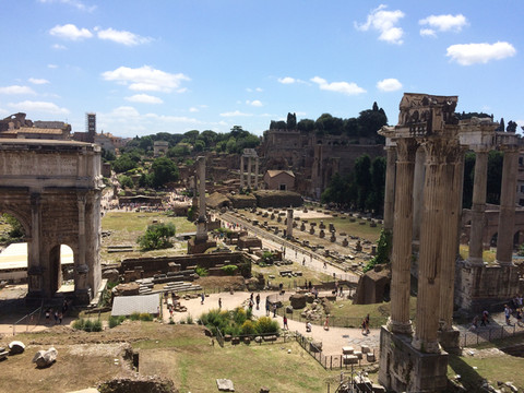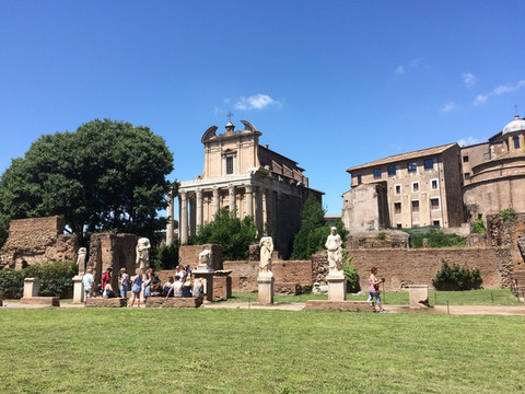 历代罗马人在这里修建庙宇、 宫殿、会议场所、政府机构;帝国时期添置尤多,而且规模宏大,石筑工程精细,即使已是废墟,在罗马的蓝天下看起来也还十分壮观。