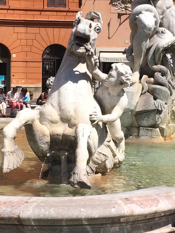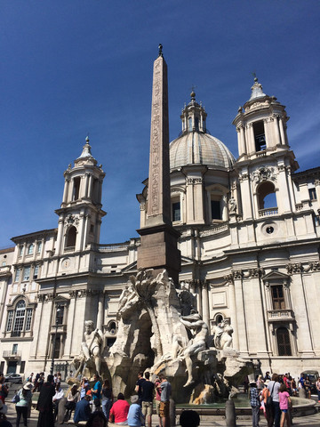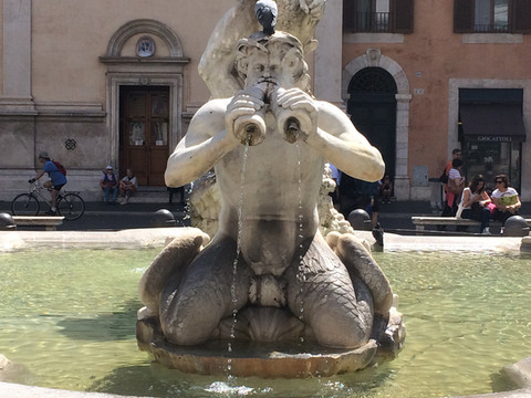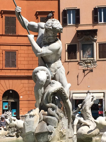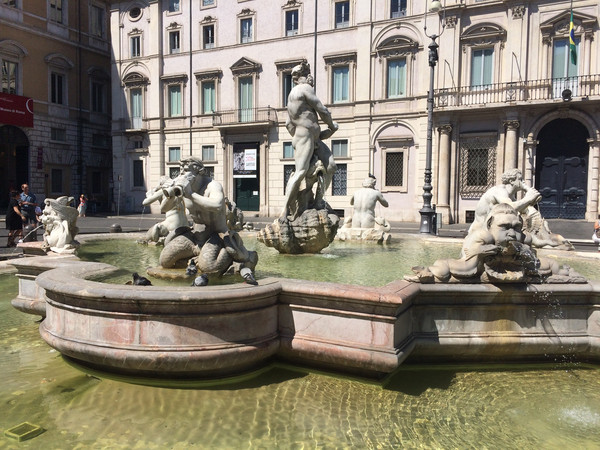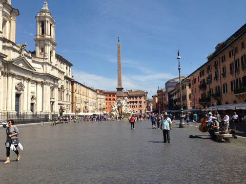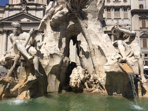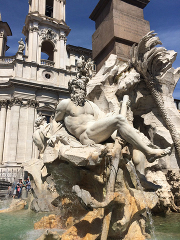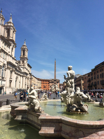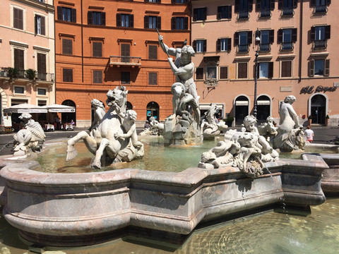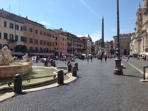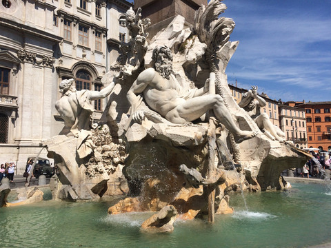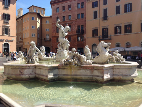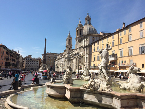 纳沃纳广场是罗马最漂亮的充满巴洛克风格的广场,广场上有三座喷泉,位于广场中央著名的四河喷泉和广场南端的摩尔人喷泉是雕塑大师贝尼尼的作品,广场北端是海神喷泉出自大师博尔塔