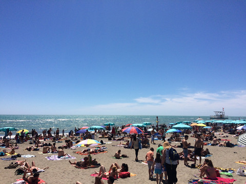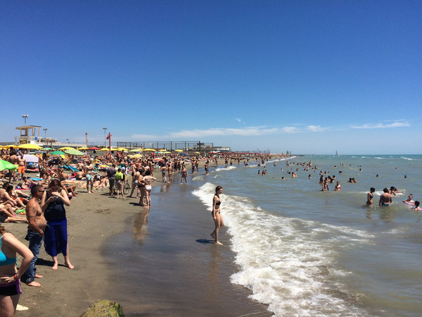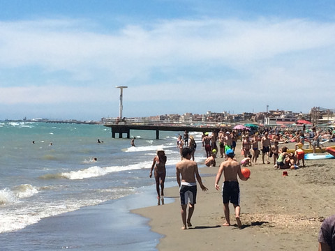 从古城遗址到奥斯蒂亚新城还要乘火车三站,新城已不见有港口,海岸皆是沙滩,倒成了如今罗马人戏水休闲的好去处。