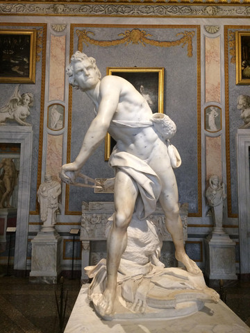 贝尼尼雕塑作品《大卫》,以自己为原型的雕塑,准备抛石的瞬间