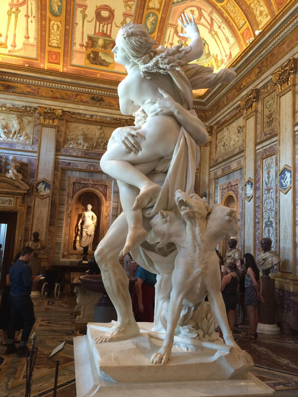 这是一个非常值得去看的顶级美术馆,藏品有贝尼尼的雕塑作品,拉菲尔、提香、卡拉瓦乔的画作,其他十五世纪到十八世纪的意大利名画,当然也少不了很多非常精美的古希腊、古罗马雕塑。该博物馆对参观者限时(一次两个小时)限量,大多是在网上预约,如果没有预约的话运气不好会进不去。我们去的那天还好,买了门票只等了一个小时,趁这段时间可以在波各赛公园走走。