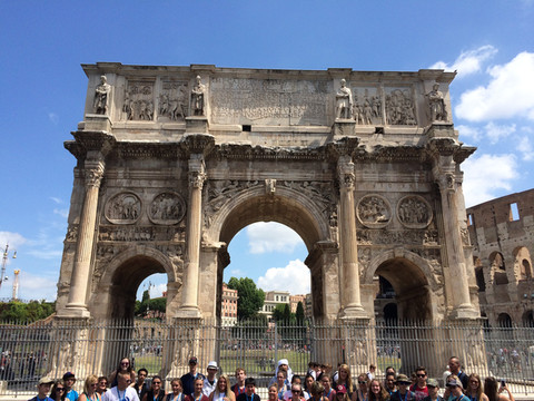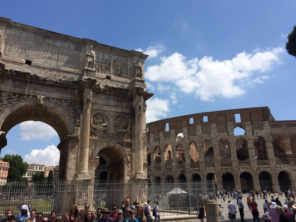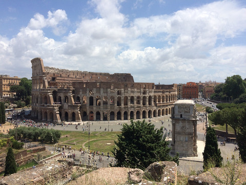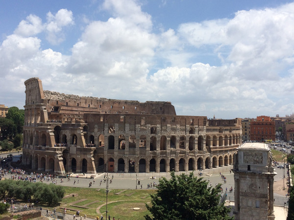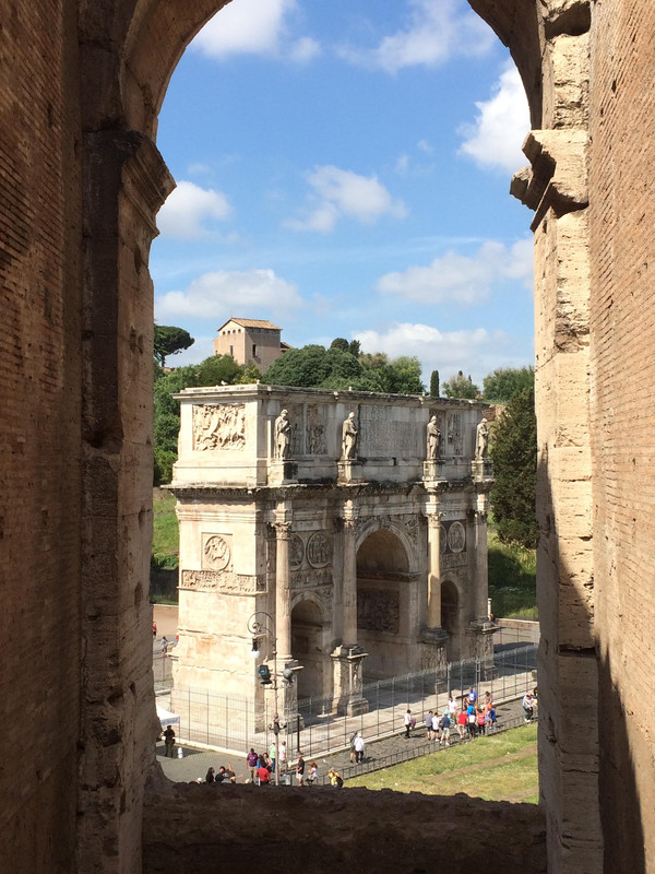 从斗兽场的拱廊望去,凯旋门气势顿失,也是罗马帝国江河日下的真实写照。