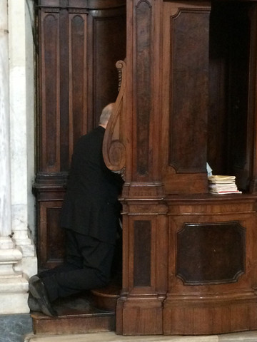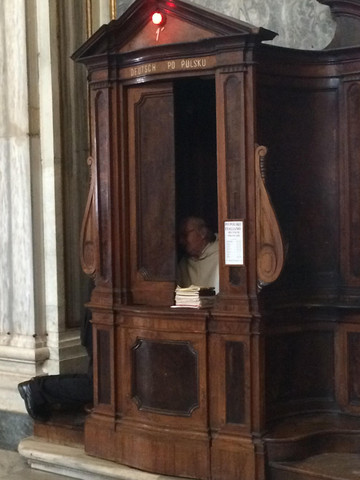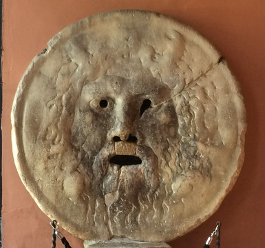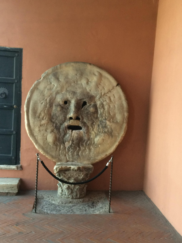 这个教堂很小很安静,这里有一块雕刻着海神头像的圆盘,据说把手放在他的嘴里,如果说谎就没办法拔出来。