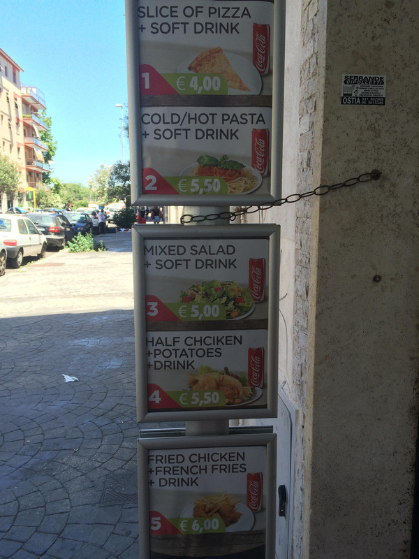 在奥斯蒂亚一份意面或烤牛排5-6欧,罗马城里要花10欧左右