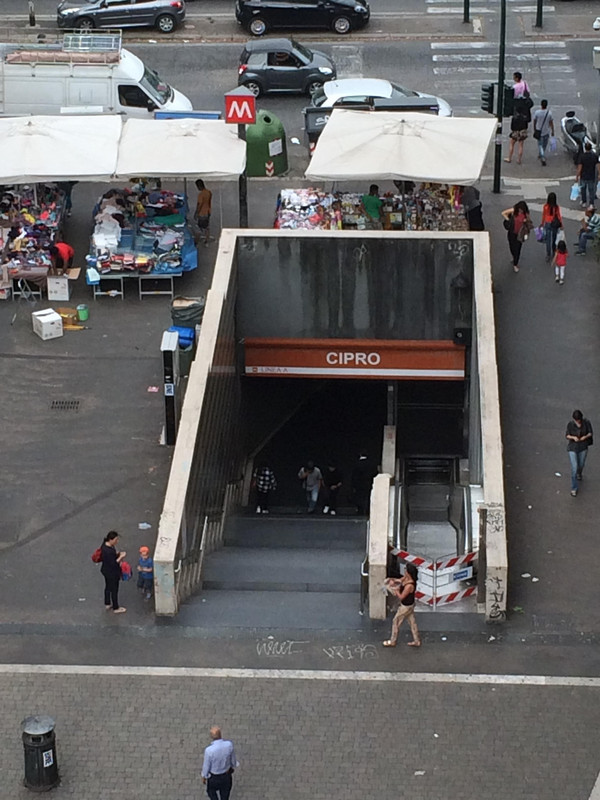 这里离地铁A线Cipro站很近,下楼走200多米可到,在阳台上就能看到地铁入口;住处附近步行5分钟之内就有两家超市,还有很多餐馆,有一家披萨餐馆生意非常火爆,饭点已过还排长队,很多都是站在外面吃,本想哪天一试,未成。